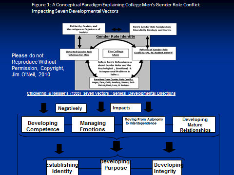 In this file, the theory in the psychology of men are integrated with Chickering and Reisser’s identity vectors with a single conceptual paradigm. This conceptual paradigm represents a new way to understand college men in the student development literature. Furthermore, the paradigm provides a conceptual framework to make a call to action for comprehensive campus programming for men.