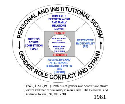 O’Neil, J. M. (1981). Male sex-role conflicts, sexism, and masculinity: Implications for men, women, and the counseling psychologist. The Counseling Psychologist, 9, 61-80.O’Neil, J. M. (1981). Patterns of gender role conflict and strain: Sexism and fear of femininity in men’s lives. The Personnel and Guidance Journal, 60, 203-210.