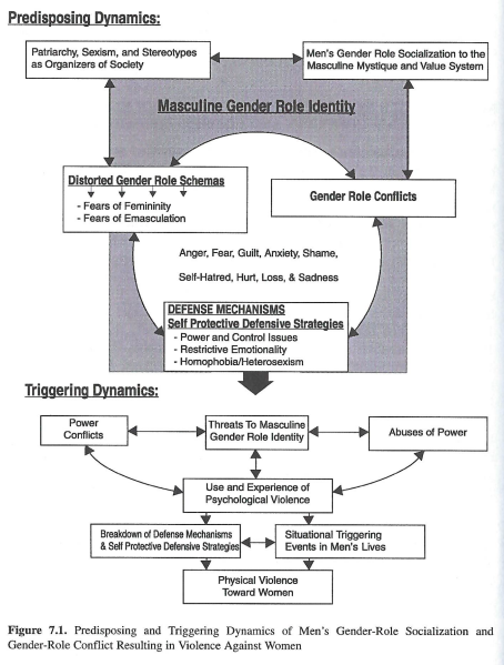 O’Neil, J. M. & Nadeau, R.A. (1999). Men’s gender role conflict, defense mechanism, and self-protective defensive strategies: Explaining men’s violence against women from a gender role socialization perspective. In M. Harway & J.
